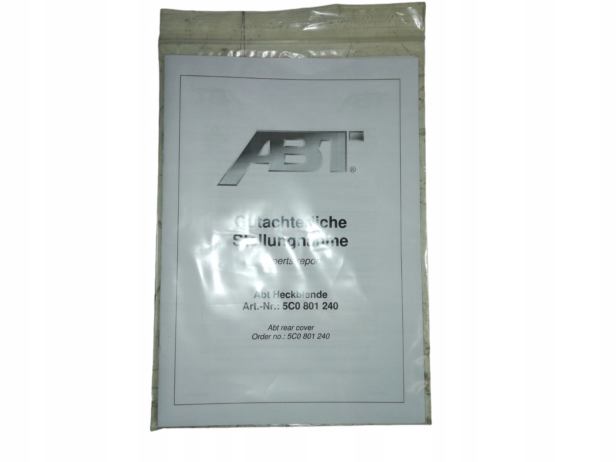 - Klej potrzebny do montażu nie wchodzi w skład zestawu. Odpowiedni zestaw kleju dwuskładnikowego można nabyć w salonie Audi AG (numer artykułu 00A.071.785) lub w ABT Sportsline (numer artykułu ANN800019) Zestaw zawiera wszystkie materiały potrzebne do klejenia.
